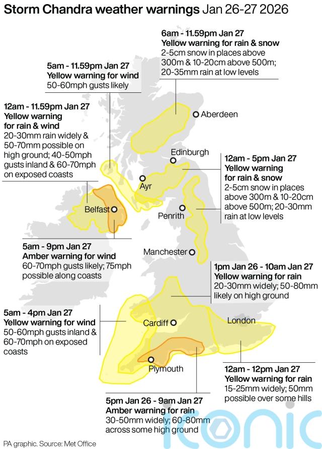 In Northern Ireland, more than 300 schools have been closed and there is a yellow rainfall alert currently in place for all six counties.