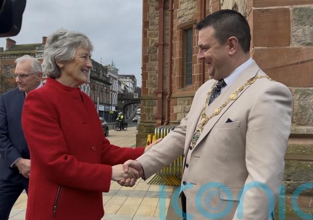 Ms Connolly was greeted on arrival to the Guildhall by the Lord Lieutenant for the County Borough of Londonderry Ian Crowe and Derry City Mayor Ruairi McHugh.