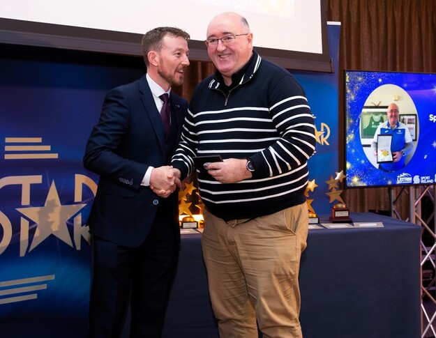 Enda Lyons (LSP Coordinator) presents John Connolly of the Leitrim Observer with a special recognition award