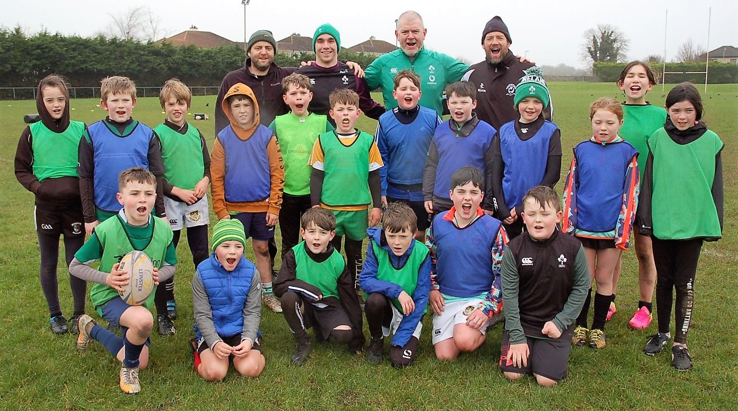 Ireland U20 rugby international Shane Mallon from Bornacoola pictured with members of the Longford RFC U10 team last weekend