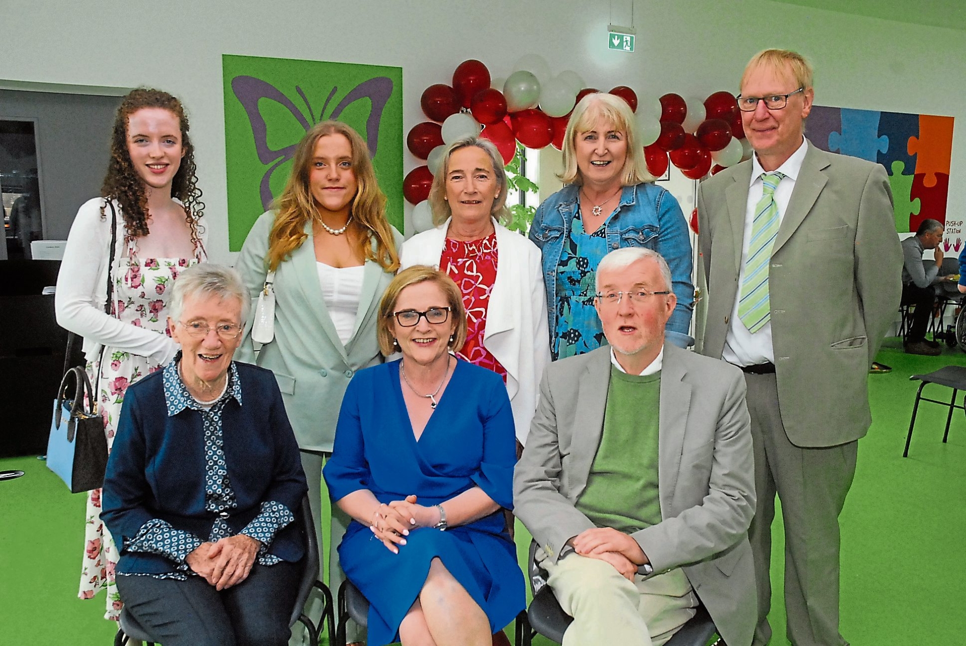 St Patrick's NS Drumshanbo principal Maírin O'Keeffe is pictured with family members at the function to mark her retirement. (Back, from left) Eibhlín & Étáin O'Connell, Bríd O'Keeffe, Martina Williams and Sven Paetz. (Front) Sister Maírin O'Keeffe, Maírin O'Keeffe and her husband Eugene O'Connell Picture: Willie Donnellan