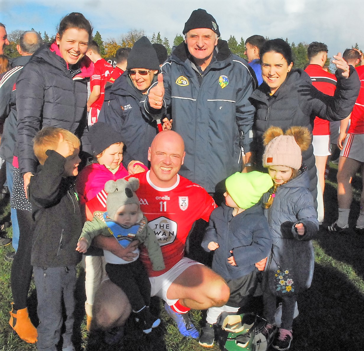 A delighted Clement Cunniffe pictured with his family after Carrick-on-Shannon's dramatic victory last Sunday against Cluainin in the Senior Hurling Final Picture: Willie Donnellan