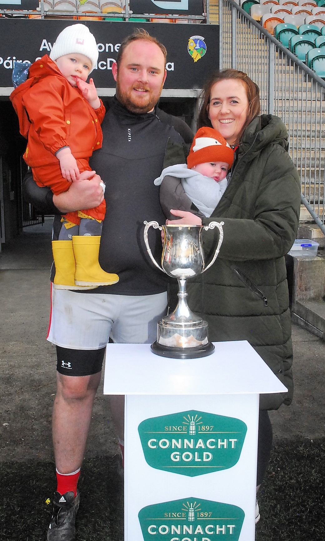 Captain Lorcan Donnellan pictured with his wife Sharon, children Muireann and Tadhg and the Stephen Dorrigan Cup Picture: Willie Donnellan