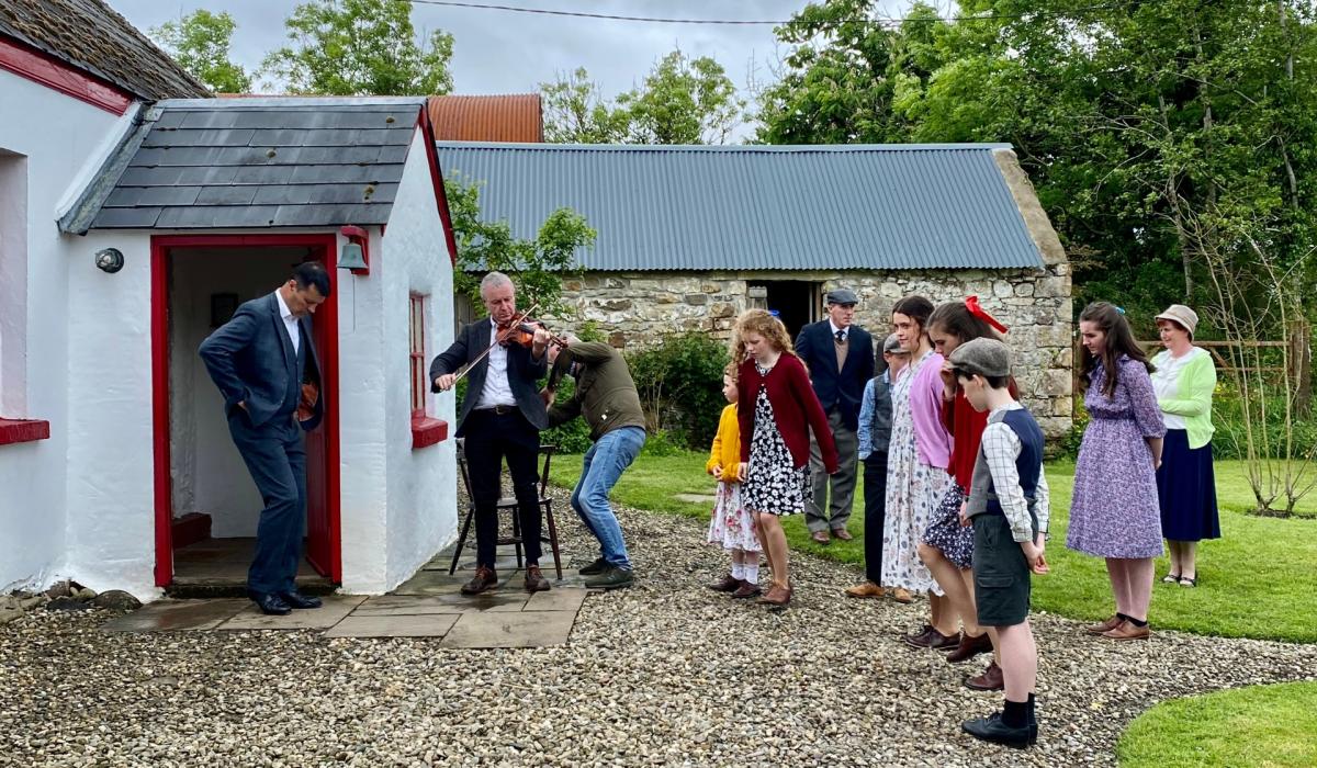 home of Leitrim Flowers in Annaghmadoo, Effrinagh with dance master Jonathan Kelliher, fiddler John Carty and local children from Leitrim Village, Kilnagross and Boyle.