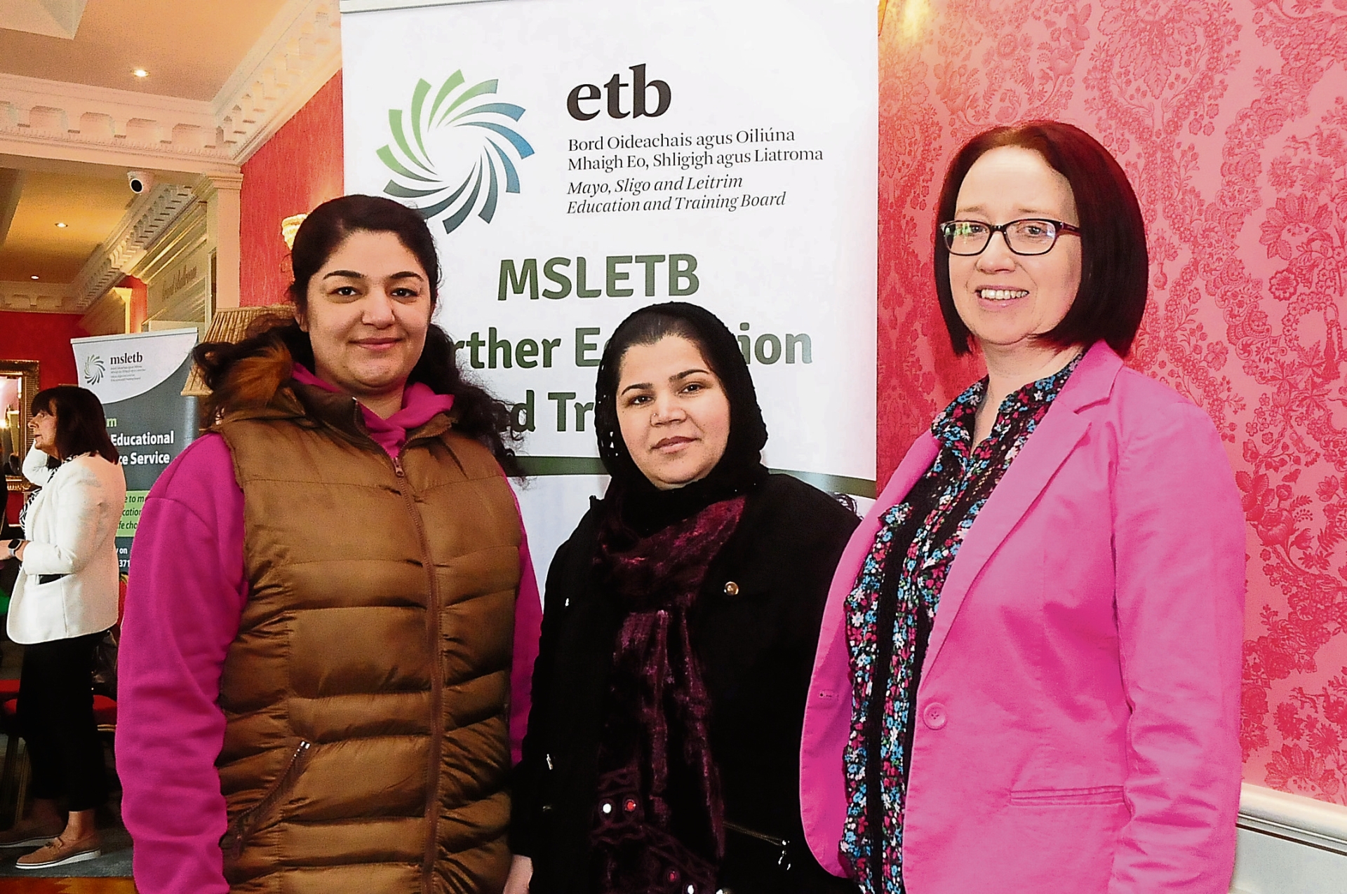 From left, Lawlaw Allakarami, Surat Ahmed, students from Carrick-on-Shannon, and Fiona Higgins, Tutor, MSL ETB.