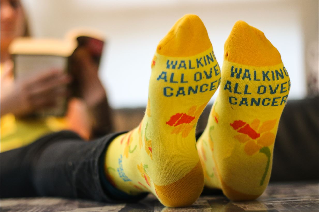 Each sock bears the message: "Walking all over Cancer" and the socks are available in two sizes 3-7 and 8-12. Most importantly, 70% of the €9 cost goes to the Irish Cancer Society to help the fight against cancer.