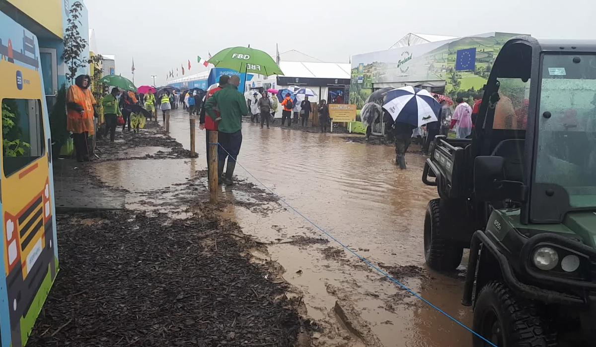 The pathway outside the FBD marquee at Row 11, Block 3 of the ploughing champioonships has been closed due to flooding.