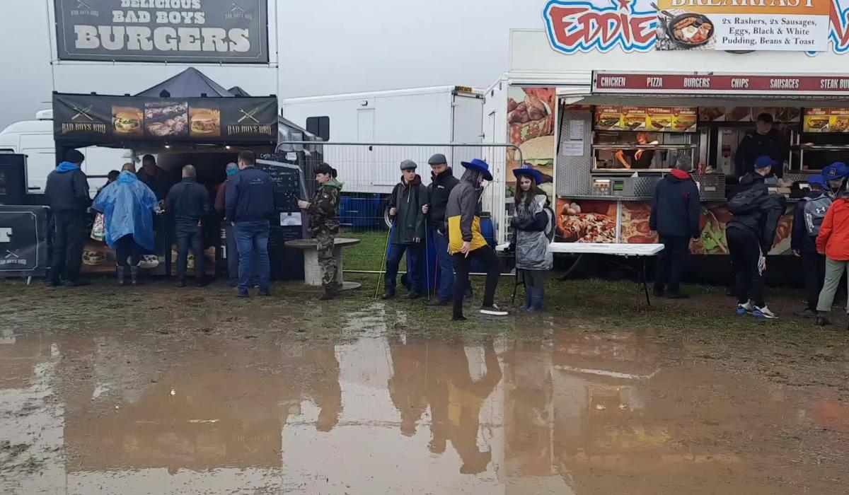 Treacherous terrain including wet muck and flooded grass appears to be particularly concentrated at the food stalls and car parks.