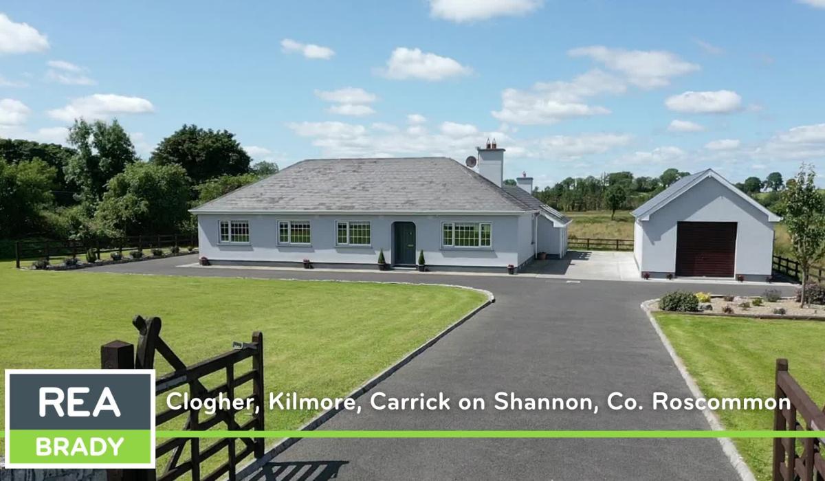 REA Brady are delighted to bring to the market this superb four bedroom bungalow on a large site with separate detached garage at Clogher, Kilmore, Carrick-on- Shannon.
